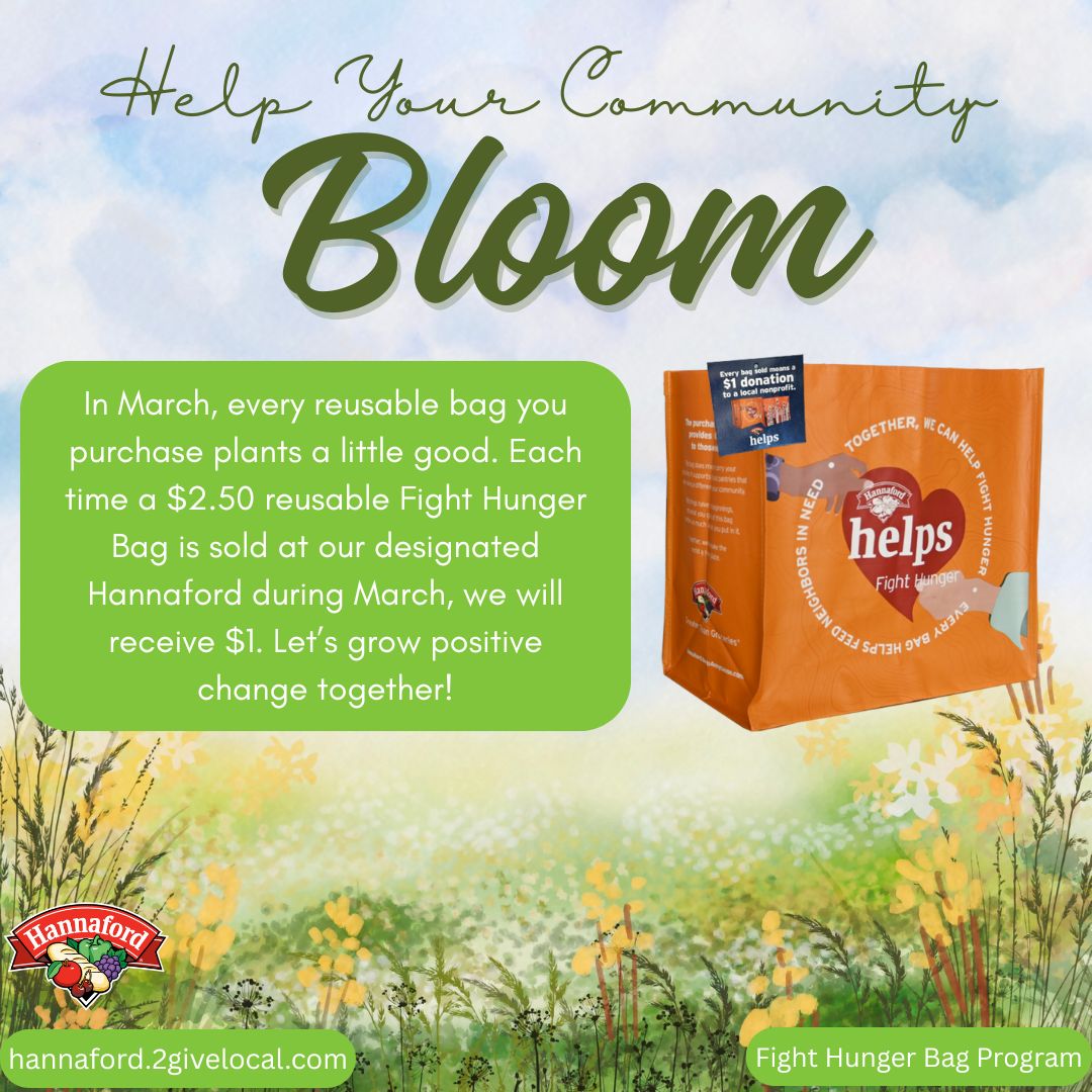 Here’s how it works: Throughout March 2026, every time a customer purchases the $2.50 reusable Fight Hunger Bag at the Hannaford located at:
